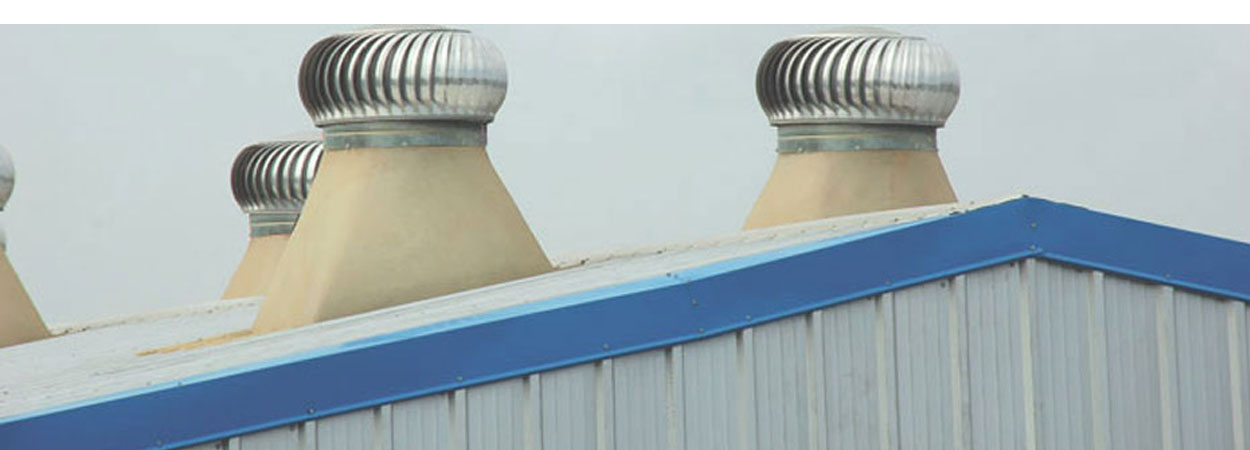 Roots Enviro efficient wind driven turbine ventilators exhaust hot and stale air at a given number of air change per hour for the building, warehouse & workshops.